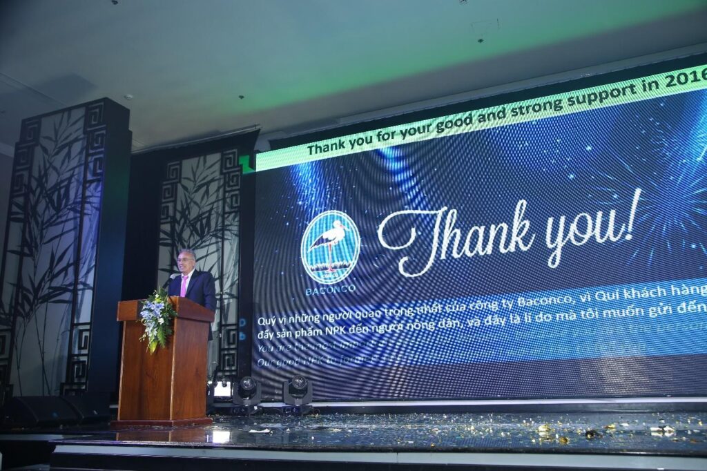 BACONCO has been organized a Customer Appreciation Program in 2017 with the topic CONNECTING FOR SUCCESS TOGETHER on 28th February 2017 in Ho Chi Minh City with the participation of 100 wholesalers and 700 retailers from Mekong Delta, South-Eastern and Central Highlands. The program aims to customer appreciation has loyal co-operated in BACONCO’s products distribution, transfer to farmers the advanced technical solutions for plant nutrition helps the farmers get best harvest.