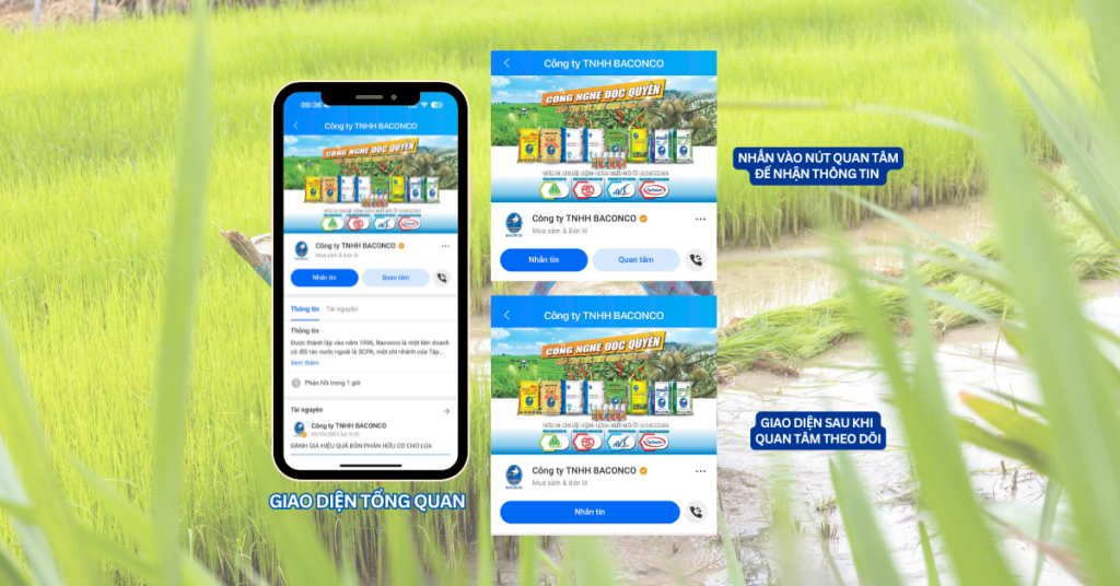 With the goal of connecting more quickly and conveniently with farmers and distributors, Baconco officially launches Zalo OA. This is an information channel that helps farmers easily access quality agricultural products, effective farming solutions, and special promotions from Baconco. Zalo OA will become an indispensable part in supporting farmers throughout the crop season.