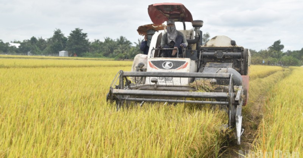 Mechanized rice harvesting in Đồng Tháp. Photo: Internet