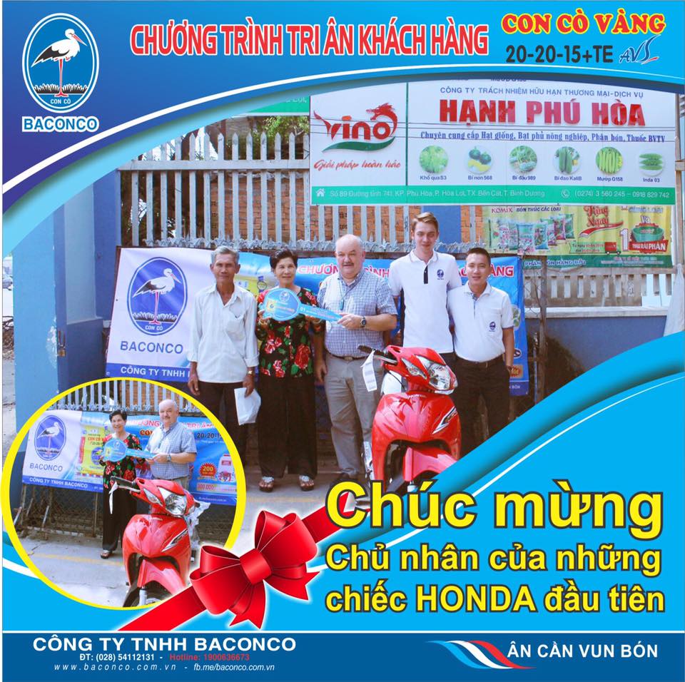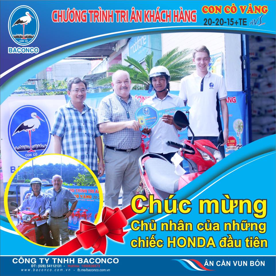 BACONCO congratulates the lucky customers who have won Wave Alpha motorbikes when purchasing CON CÒ VÀNG products.