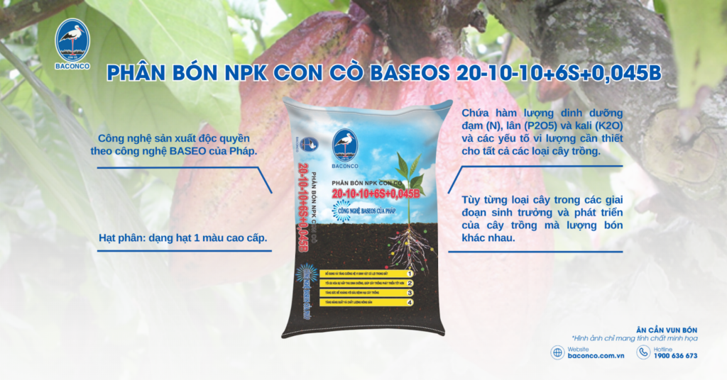 Applying nutrient supplements to cocoa trees using Baconco‘s NPK products correctly and in the right dosage will help the trees grow strong, yield high, and produce good fruit quality. However, farmers need to complement with other care measures such as watering, weeding, and pest control to achieve optimal results. We hope the information above will be helpful for farmers in cocoa cultivation.
