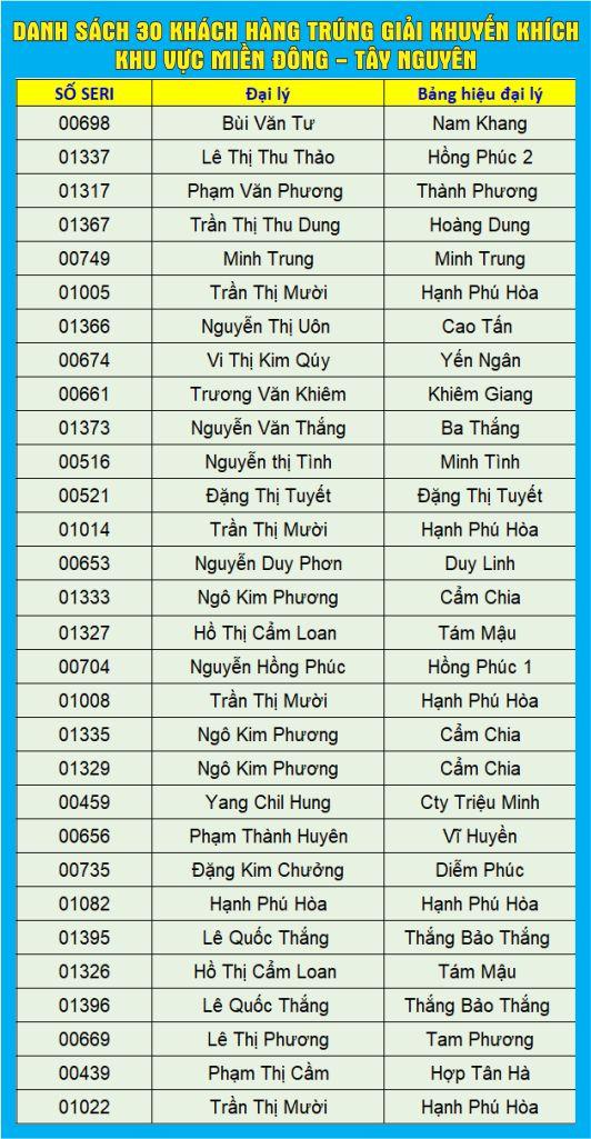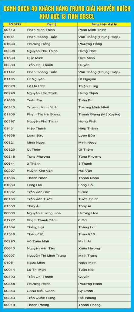 List of 40 customers winning the consolation prize in 13 provinces of Mekong Delta – 01 SJC Gold ring