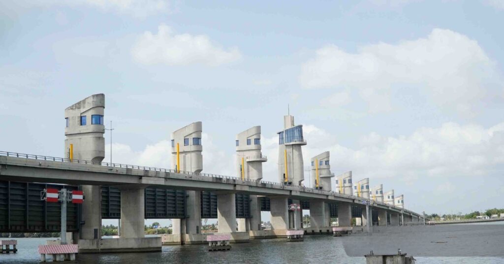The Cái Lớn – Cái Bé project is the Mekong Delta’s largest irrigation system, built to manage saltwater intrusion and regulate freshwater. Source: Báo Lao Động