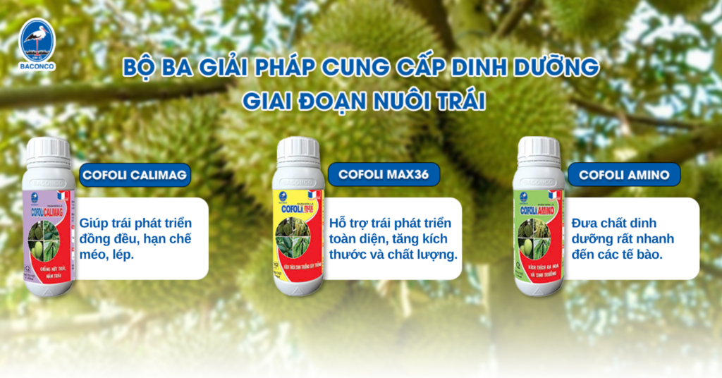 Baconco introduces a premium foliar fertilizer series imported from France to help durian fruit develop uniformly and meet export standards: