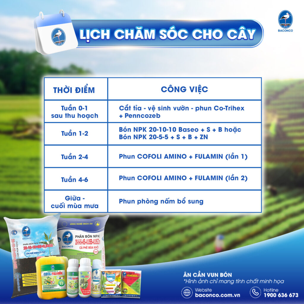 Hướng dẫn phục hồi cà phê sau thu hoạch giúp nuôi cành dự trữ khỏe, ổn định năng suất với quy trình và sản phẩm Baconco.